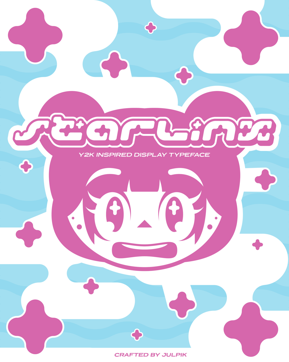Starlinx is a display typeface that heavily inspired from Y2K typography style. The letter are bold, has smooth edge with star ornament as aesthetic purpose.