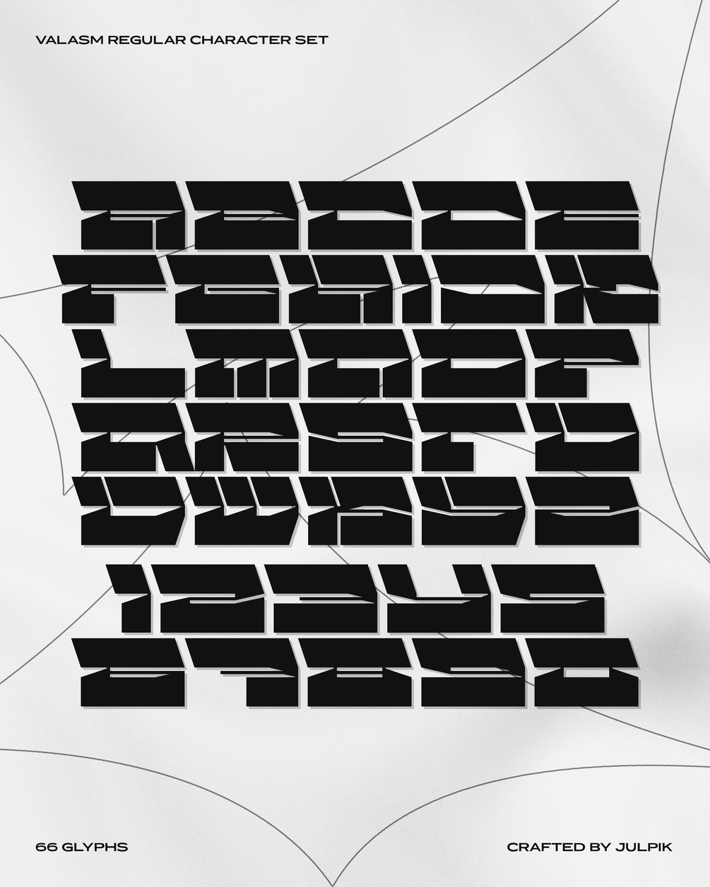It consist of 2 types of font,the regular and the sliced. the demo version only has 36 glyphs